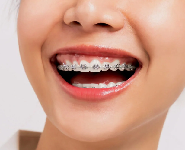 Less noticeable due to tooth-colored brackets.